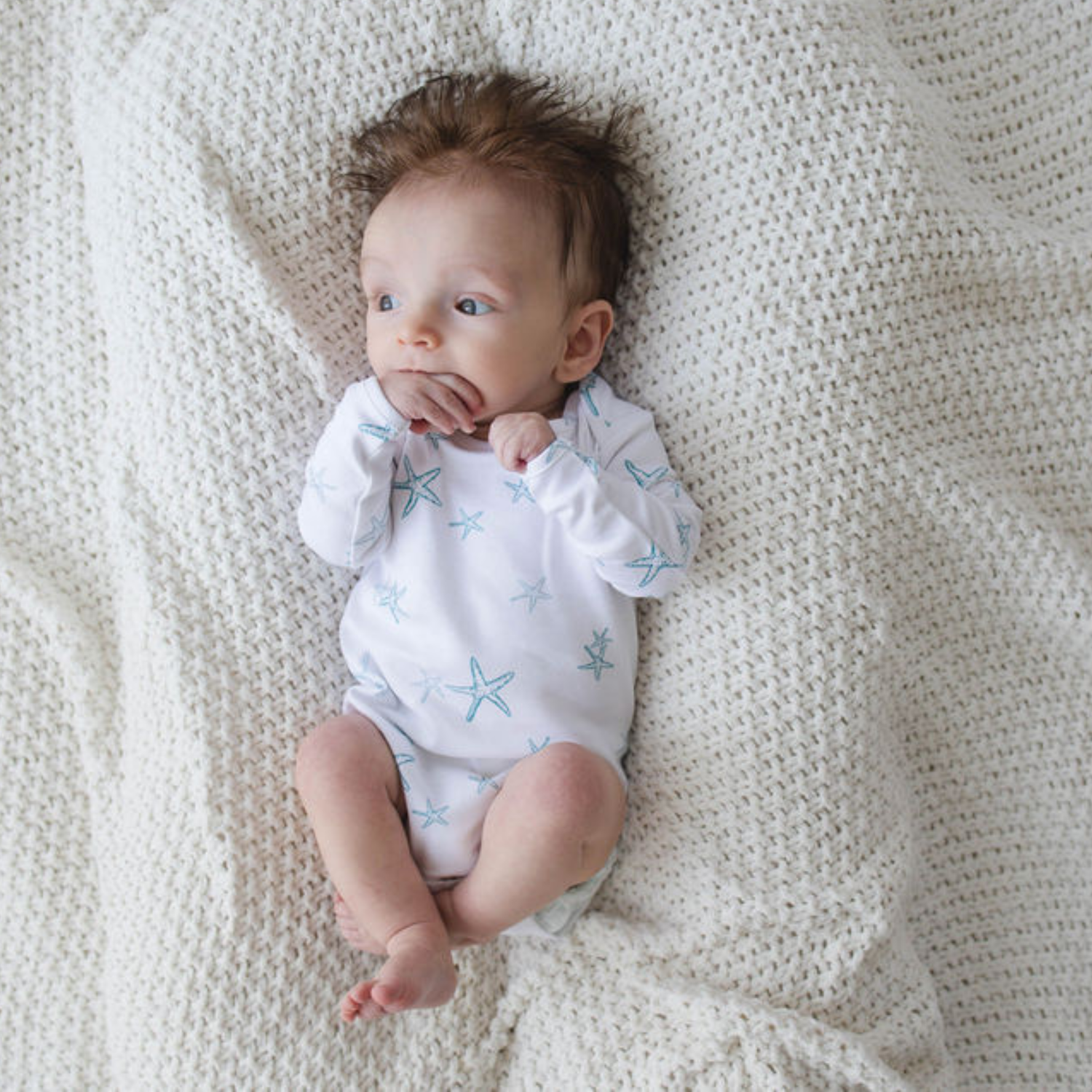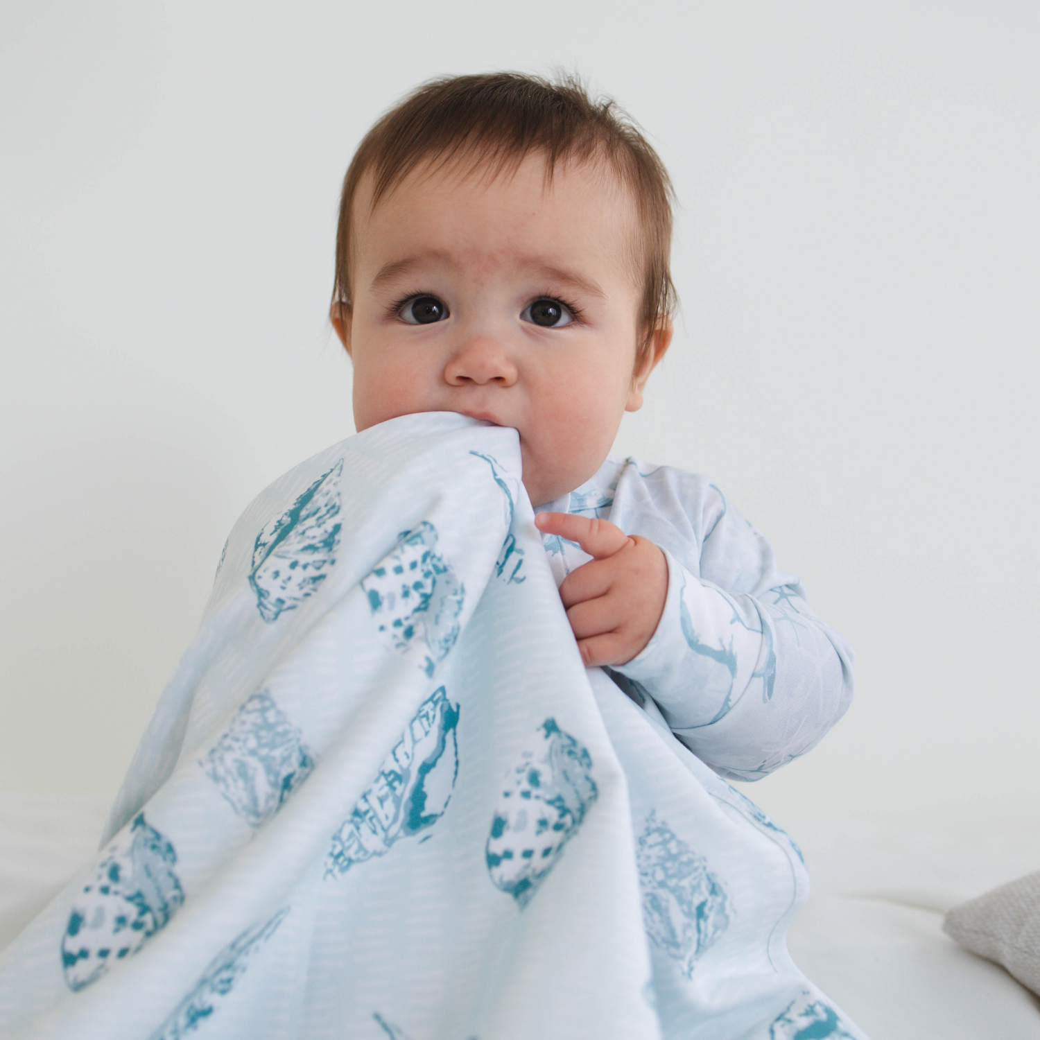 Sea Dream sings a lullaby of tides and time. Soft as sea foam and just as timeless, this design brings the shoreline’s quiet joy to baby’s world.